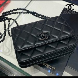 ギフトに最適☆★レアカラー★【シャネル 偽物】ALLBLACKコンパクトチェーンウォレット