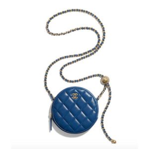 ◇シャネル◇偽物 チェーンクラッチ ラムスキン ブルー 2021SS