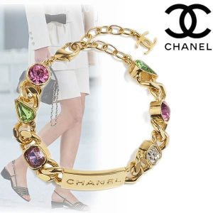 シャネル ブレスレットコピーカラフルパールクリスタルロゴ ゴールドAB5762 B04928 NB233