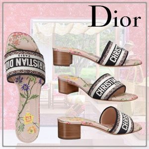 ディオール 偽物 Dway サンダル エンブロイダリー コットン ヒールミュール KCQ244FWY_S38P