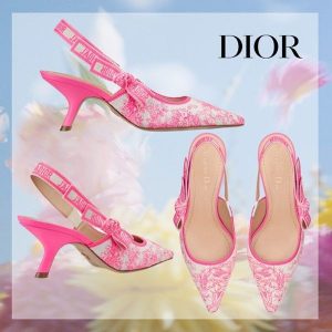 ディオール JAD.I.O.R スリングバックパンプス ピンク コットン 花柄 偽物 KDP761TJU_S76W