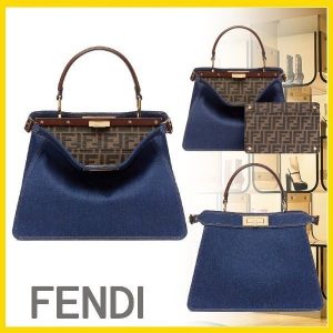 フェンディ ピーカブー ダークブルー デニムバッグ 偽物 8BN321ALP4F1HZT
