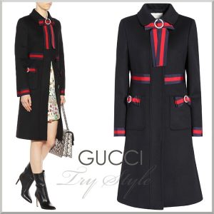 17-18AW★グッチ ウェブ&ジュエル ボウ付き ウール コート