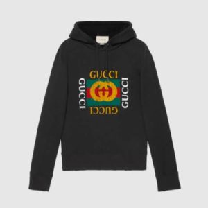 新作 グッチ スーパーコピー パーカー コットン スエットシャツ フーディー グッチ ロゴ Black