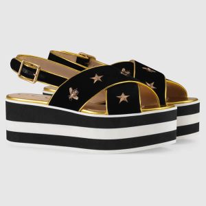 【グッチ】ビー&スター ベルベット ハチ 厚底サンダル