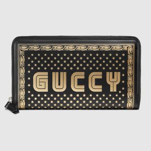 GUCCY スター フレーム モチーフのメタリックゴールド プリントされたジップアラウンドウォレット