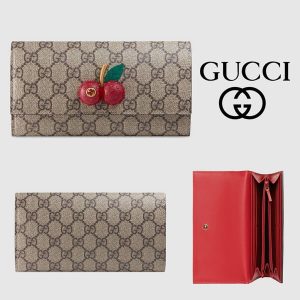 2018新作限定【グッチスーパーコピー】チェリー付き☆GGスプリーム*コンチネンタルウォレット 476055 K9GXT