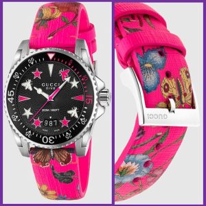 グッチダイブウォッチ40mm フローラルピンクレザーストラップYA136326