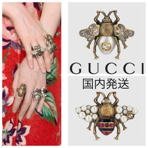 2019新作大人気 グッチスーパーコピー クリスタル&パール付きビーリング/ギフトに