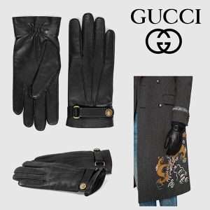 【グッチ】キャットヘッドベルトモチーフ*レザー*グローブ 475379 4SA04 1000