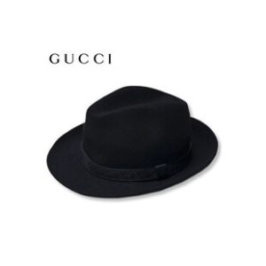 グッチ ロゴレザーディテール ブラックフェルト/ハット帽子ブラック 309145 F0240 1000