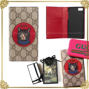 国内入手困難 グッチ GGスプリーム ネコのアップリケつき 手帳型iPhone7/8ケース