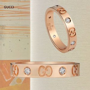 お洒落◆グッチ ピンクスーパーコピー ゴールドアイコンリング152046 J8540 5702
