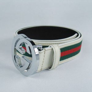 グッチスーパーコピー GGキャンバス レザー ベルト シルバー金具 牛革gu-03