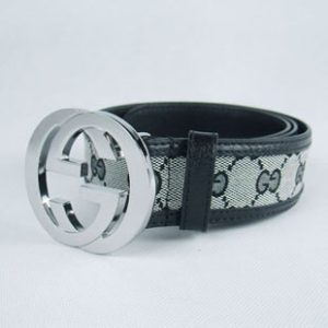 グッチスーパーコピー GGキャンバス レザー ベルト シルバー金具 牛革gu-06