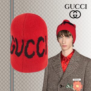 18AW【グッチスーパーコピー】バット&グッチロゴ付き ウールハット ビーニー