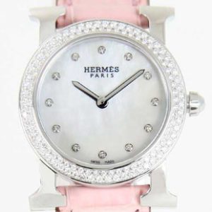 エルメスコピー Hウォッチ ラウンド ダイヤモンド レザー ピンク/ホワイトシェル レディース HR1.230.284/MRP