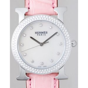 エルメスコピー Hウォッチ ラ?ロンド HR1.530.284/MRP1 ベゼルダイヤ SS ピンク皮ベルト12Pダイヤ レディース ホワイト