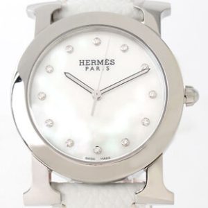 エルメスコピー Hウォッチ ラウンド ダイヤインデックス レザー ホワイトシェル ボーイズ HR1.510.284/UBCM2