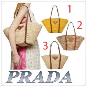 プラダ かごバッグ ストロー レザー ハンド カゴバッグ スーパーコピー