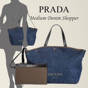 19AW PRADA プラダスーパーコピー ロゴ入り デニム ショッパー ミディアム 1BG242 OOO 2BBV F0YFS