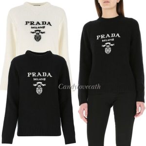 プラダ ロゴ カシミアxウール クルーネック セーターコピー品