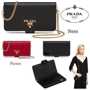 【PRADA】サフィアーノ☆チェーン付iPhone X/XSケース1ZH078_QWA