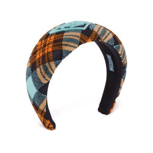 【PRADA】偽物 刺繍入りプレイドベルベット☆ヘッドバンド1IH016_2DK5